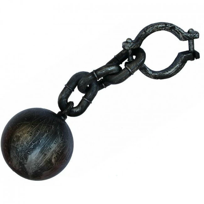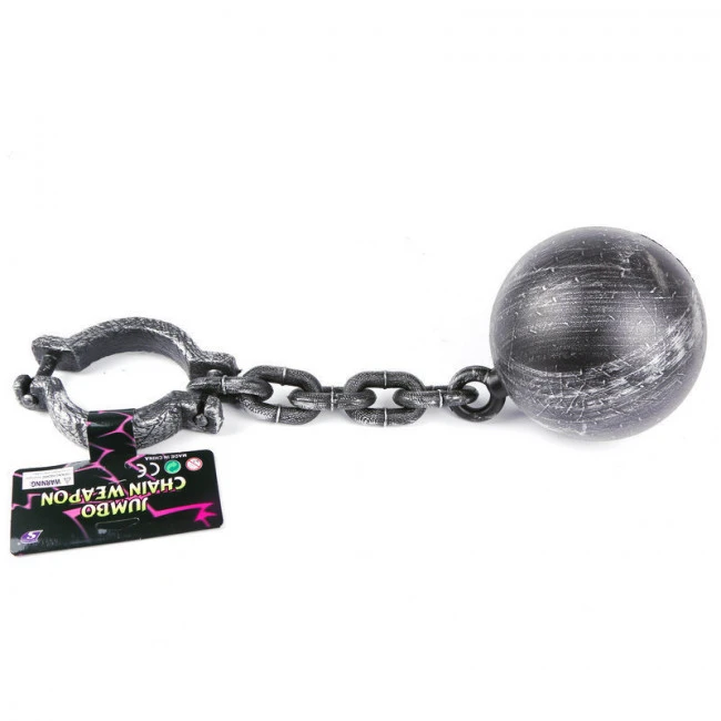 Ankle Shackles Ball and Chain Cosplay Prop. This toy ball is connected to chains and is the perfect costume for a jail theme costume party. It is also ideal for a boys or girls costume box for a kid who loves pretend play and dress up.