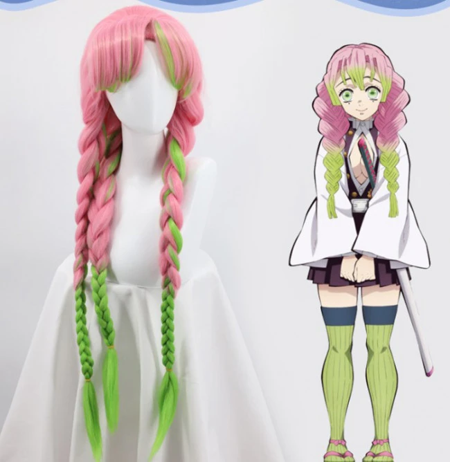 Demon Slayer Kanroji Mitsuri Pink Green Wig. are made of high temperature fibers that are natural, soft and comfortable, just like human hair. All of our wigs are carefully handcrafted with a designed fiber density which makes the wig cap completely invisible and avoids any artificial appearance.