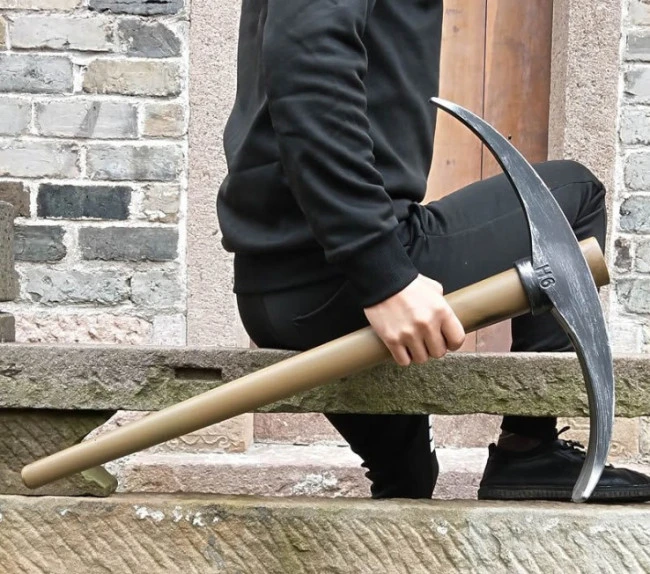 Fortnite Basic Pickaxe Prop. This basic pickaxe is the first harvesting tool you begin with in the game and brings back plenty of season-one memories. It comes equipped with a brown handle and silvertone head that’s engraved. A reliable choice for breaking down even the largest of structures, you’ll be swinging your way to victory this Halloween when you have your default pickaxe handy!