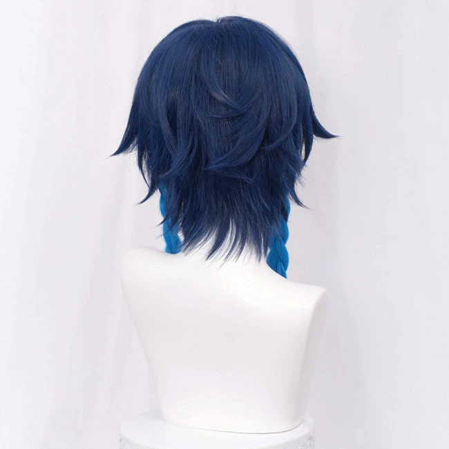 Genshin Impact Venti Cosplay Costume Wig Hair. Genshin Impact is an open world all action role-playing game. In the game, the players control a number of party members, that have different abilities, gear, weapons and personalities. You can switch between characters during fights in order to use a different mix of skills and attacks. The reason Genshin Impact is so popular is because it is a F2P game. Venti is a playable Anemo character of the game. He is a free spirited character and a wine loving poet. Venti is a carefree man with a playful attitude. He likes to rhyme his speeches and is bold. Venti is a God and is allergic to cats. Here we have Venti Cosplay Wig Hair that is dual colored blue with a short behind and pigtails front. Beautifully designed, excellent workmanship, lightweight, fashionable and creative, this is a must have hair wig for all kinds of occasions, events and parties.