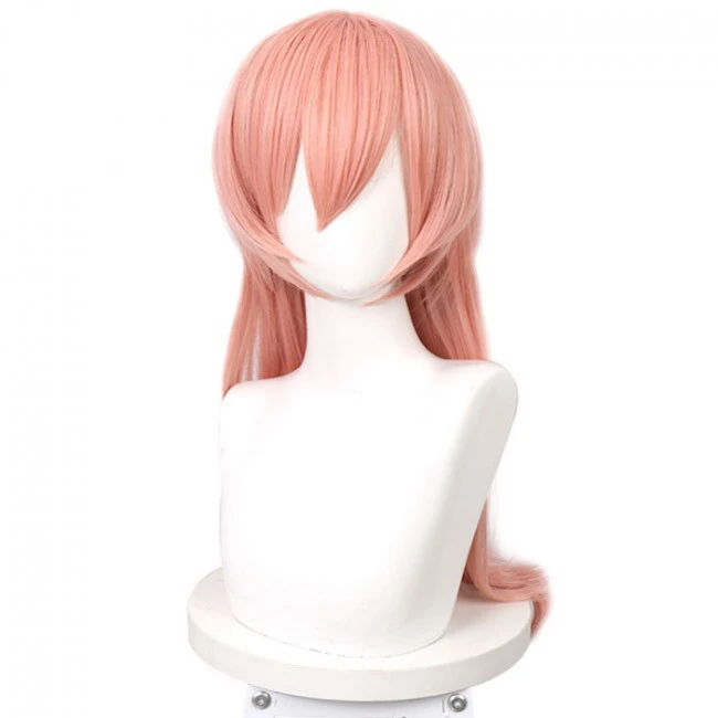 Genshin Impact Yanfei Cosplay Costume Wig Hair. Genshin Impact is an open world all action role-playing game. In the game, the players control a number of party members, that have different abilities, gear, weapons and personalities. You can switch between characters during fights in order to use a different mix of skills and attacks. The reason Genshin Impact is so popular is because it is a F2P game. Yanfei is a Pyro character who is from an adeptus father and human mother. She is a skilled legal adviser and is a fair person. Yanfei likes appraising, reading, is knowledgable, fights for justice and a tad playful. Yanfei is young, fair skin and bright teal green eyes. Here we have Yanfei Cosplay Costume Wig Hair that is salmon pink in color and long. Beautifully designed, excellent workmanship, lightweight, fashionable and creative, this is a must have hair wig for all kinds of occasions, events and parties.
