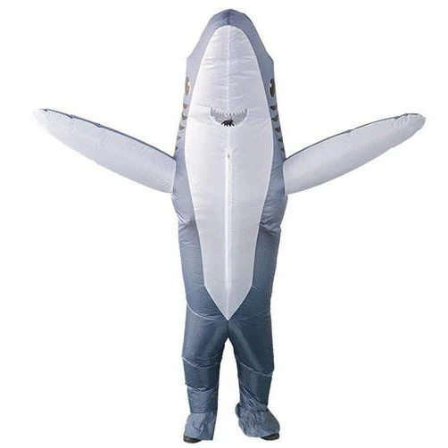 Grey Shark Inflatable Costume. It is lightweight, comfortable, and it provides good permeability with clear sight. It is high quality and made by hand.
