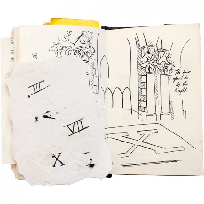 Indiana Jones Grail Diary Cosplay Prop. Each page is carefully scanned and printed using handwritten originals we created with antique ink and pens, as well as hand-painted pages. Then, every page of your journal is meticulously hand-aged and weathered for an authentic look.