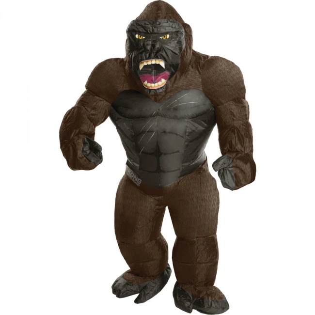 Inflatable King Kong Costume For Kids. This scary gorilla like inflatable costume will terrify everyone that you cross paths with. Easily inflate the suit and you’ll be ready to storm through the neighborhood as this terrifying monster of the jungle!