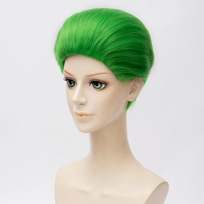 Get that iconic green hair with this Joker Wig. Inspired by his look in Suicide Squad, this green wig features a slicked back styling. Transforming into a psychopathic supervillain is easy with this Suicide Squad Joker Wig.