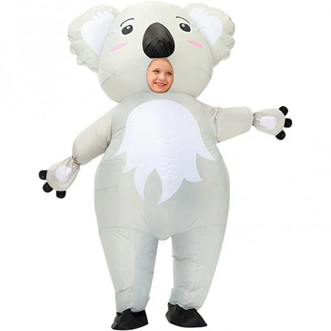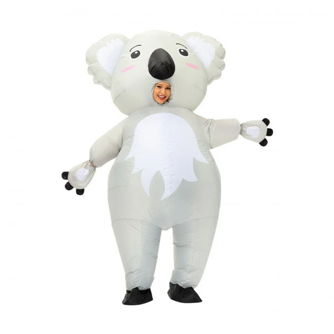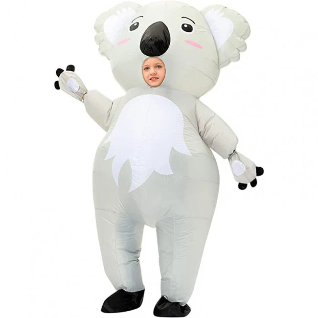 Koala Inflatable Costume. The inflatable koala costume is very easy to inflate. The battery-operated fan will inflate the costume in tens of seconds.