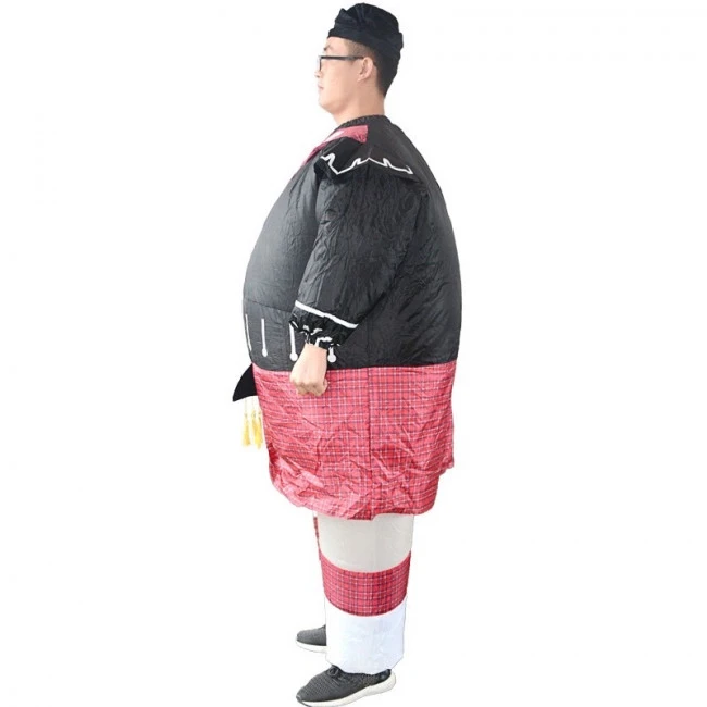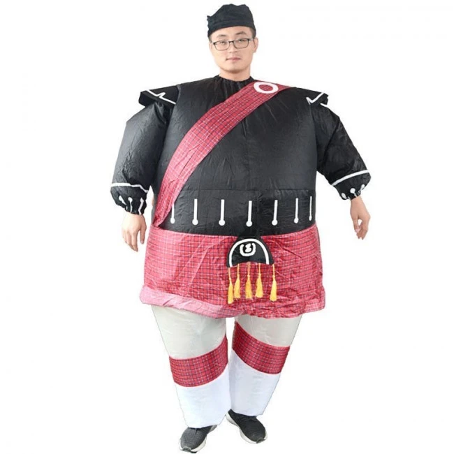 Scottish Kilt Inflatable Costume. This inflatable costume is made of waterproof polyester fabric, which is durable and easy to store, walk and move freely everywhere, without any hindrance.