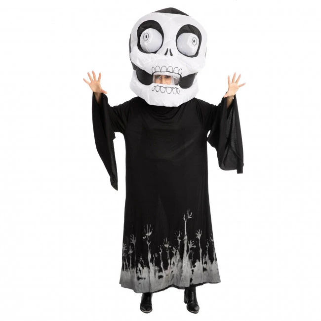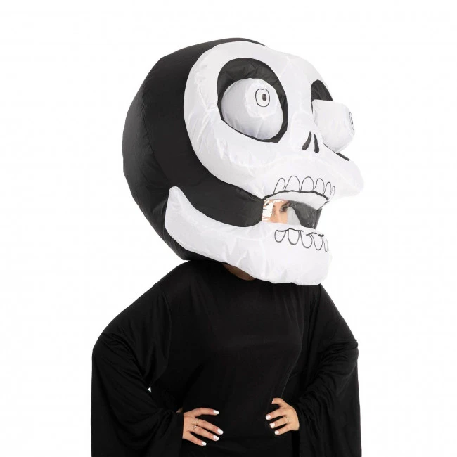 Skull Head Inflatable Halloween Cosplay Costume. Our inflatable costume is made of high quality, waterproof polyester. Ultra-durable, lightweight, soft and comfortable to wear. Easy to deflate and storage.
