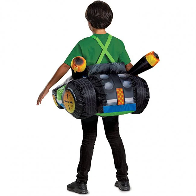 Yoshi Mario Kart Inflatable Costume. Inflatable costume is made of 100% polyester fiber, waterproof and breathable. It can touch your skin. Healthy and comfortable. The size of the product is suitable for most adults and teenagers.